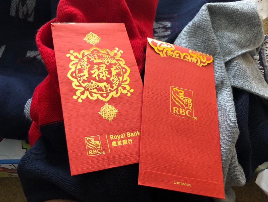 Ma and my aunt each gave T a red envelope, a Chinese tradition of putting money into a lucky red envelope.