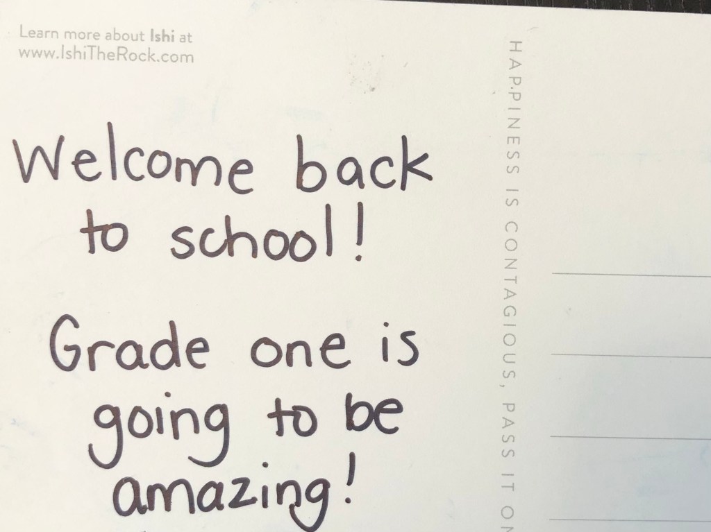 T’s teacher said he had a good first day – and the lovely postcard (above) given to each student was a wonderful gesture.