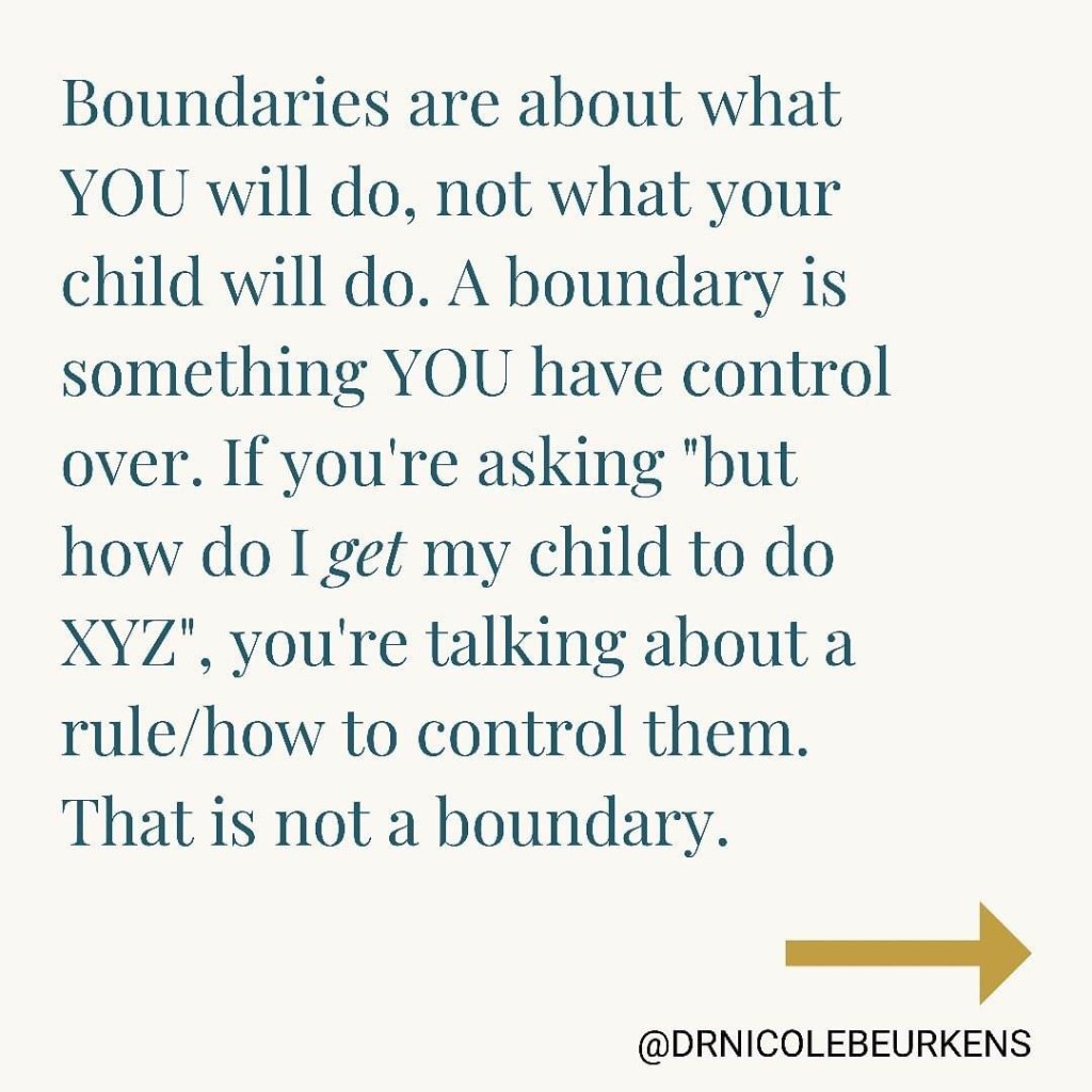 As stated on the above image, citing Dr Nicole Buerkens, boundaries are about what you will do, not what your child will do. A boundary is something that you have control over.