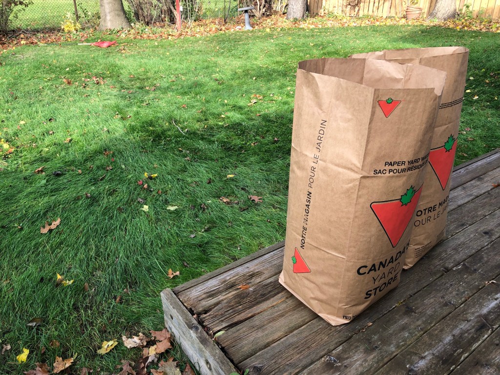 T did a great job. He was focused for 15 minutes, helping make big piles. Then he decided to run around the backyard. He circled back in the last 15 minutes to help me scoop leaves into bags.