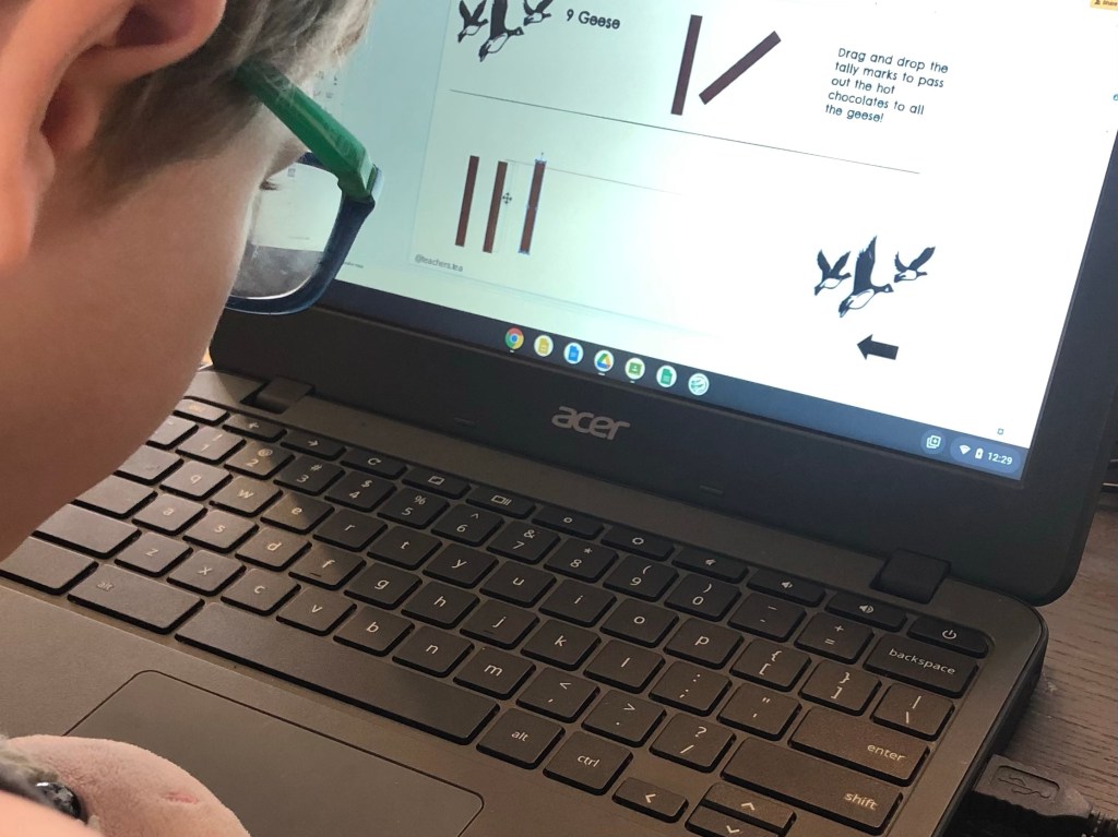 Even better, T’s teacher did not host live classes today; instead, he was given two math assignments to complete on his own.