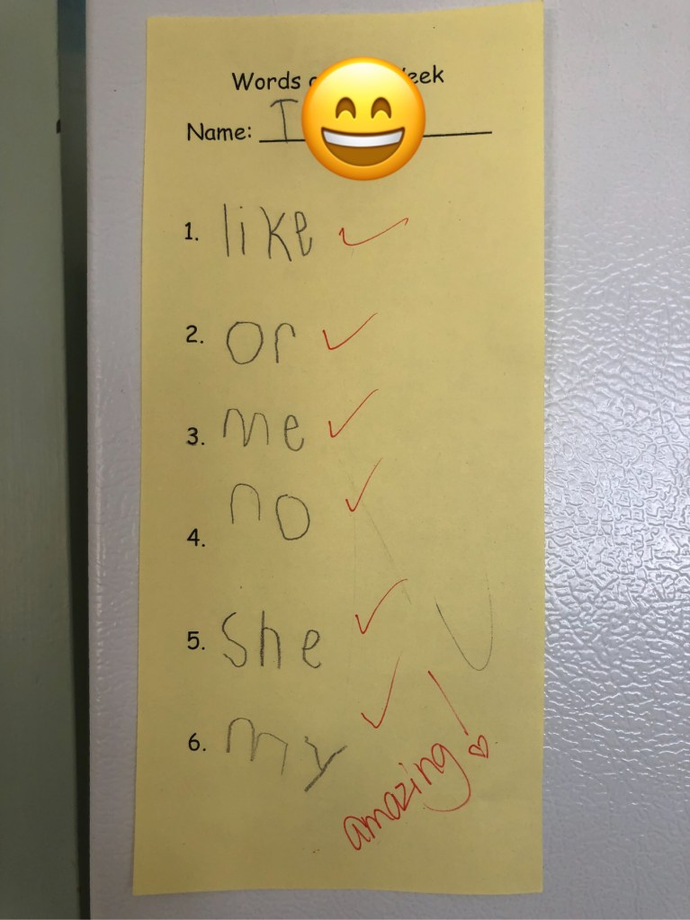 Smaller things make my heart soar. Like T crushing his spelling test this week, earning an “Amazing!” from his teacher, and his proud smile when he sees it posted on the fridge.