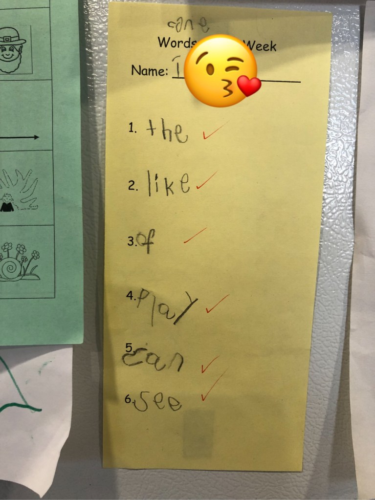 T’s teacher recently introduced Words of the Week; six words given on Mondays that he practices for a test on Fridays.