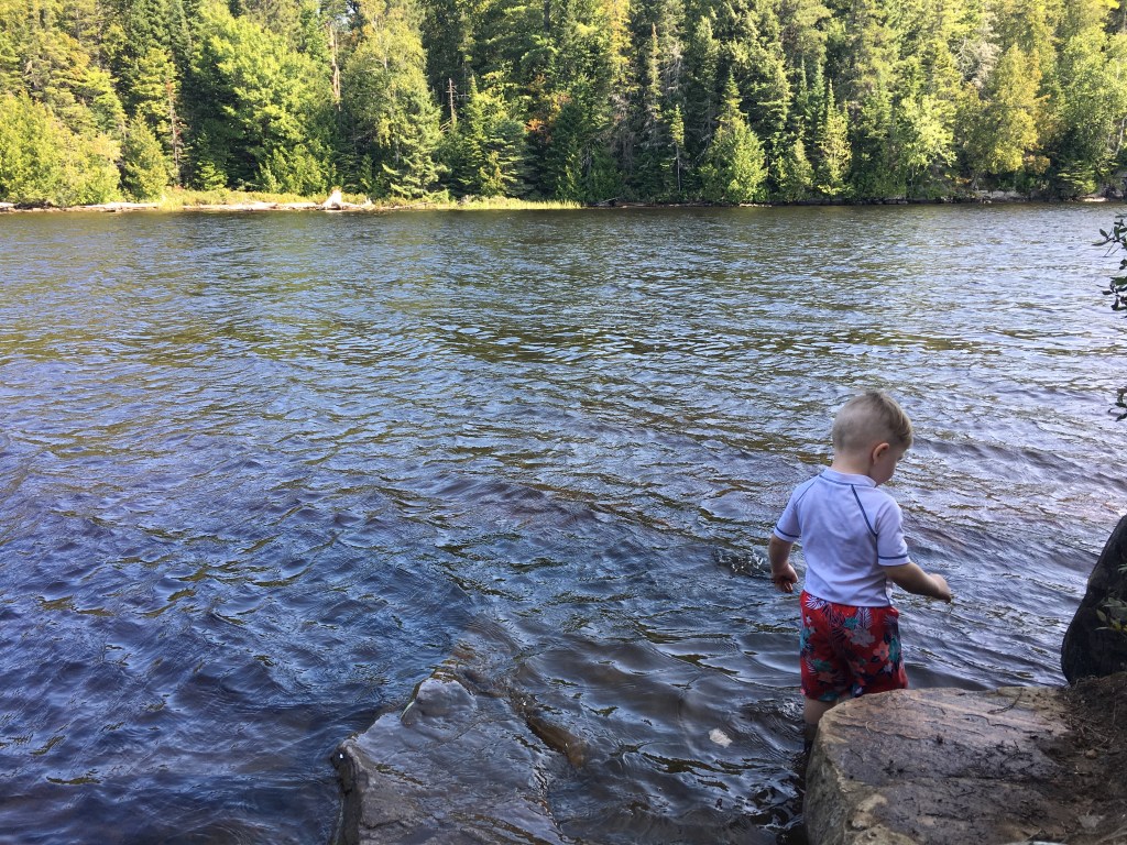 We stopped on a small island and had it all to ourselves. We enjoyed a picnic. In just one summer, T became comfortable in the cold lake water.