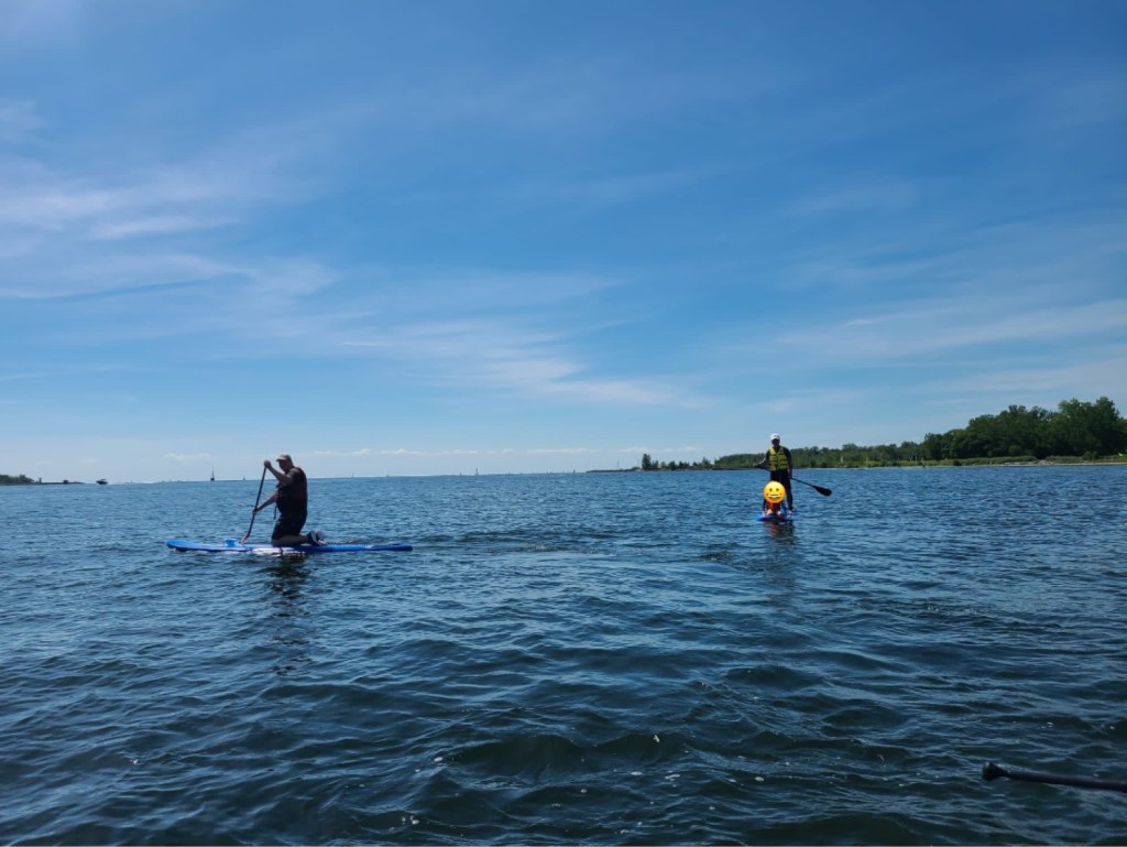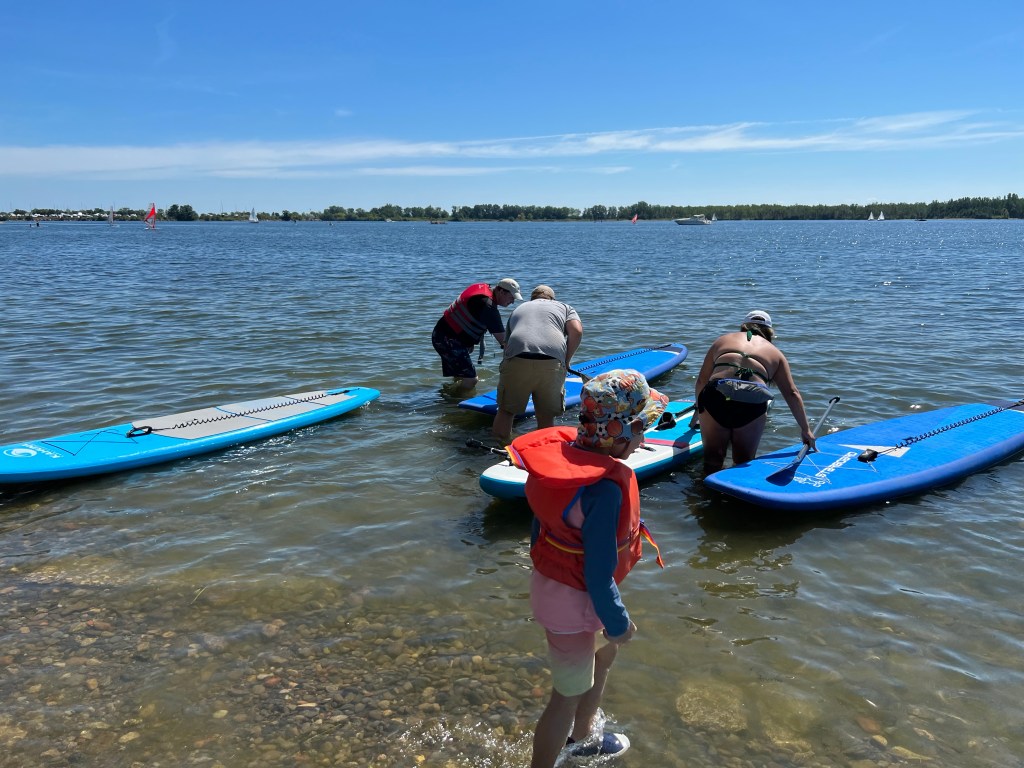 On Sunday, our friend, T’s Auntie E, whom we recently went to Tobermory with, organized a stand up paddle board outing for friends and us.
