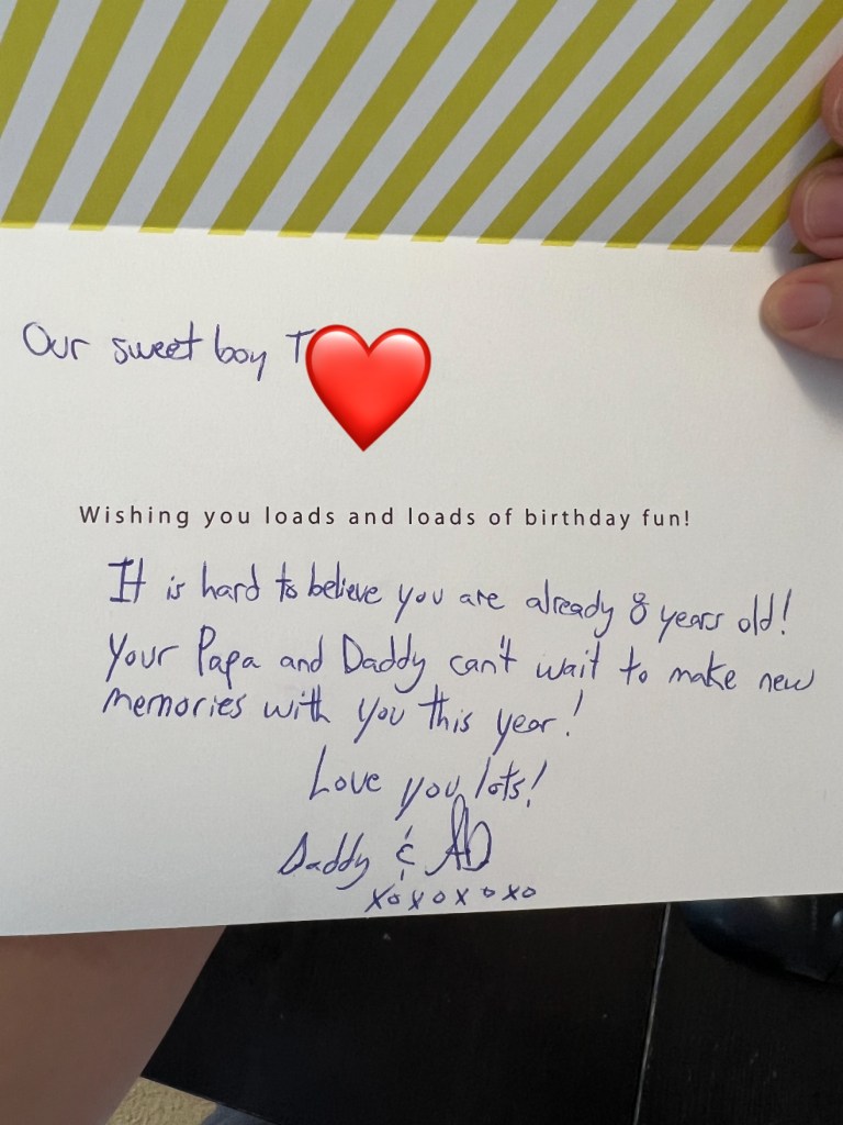 You know you’re exhausted when you sign a birthday card for your son using your first name instead of “Papa.” 😆
