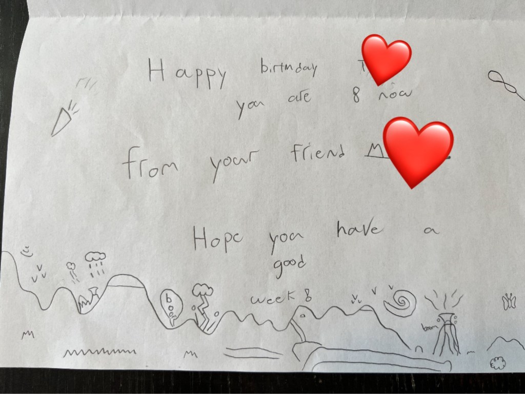 But it was wonderful that his CYW gave him a gift and two classmates each made him a card.
