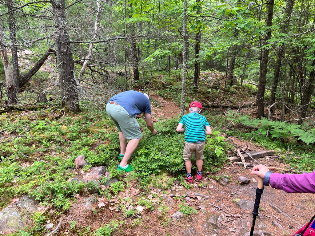 A Saturday morning 2.5 km hike through the woods that had wild blueberry bushes along the trail, which we picked and nibbled on.