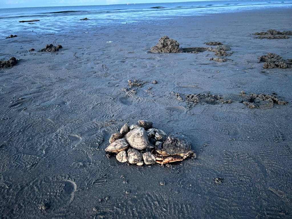 Low tide was coming and we dug up quahogs for an hour till dark.