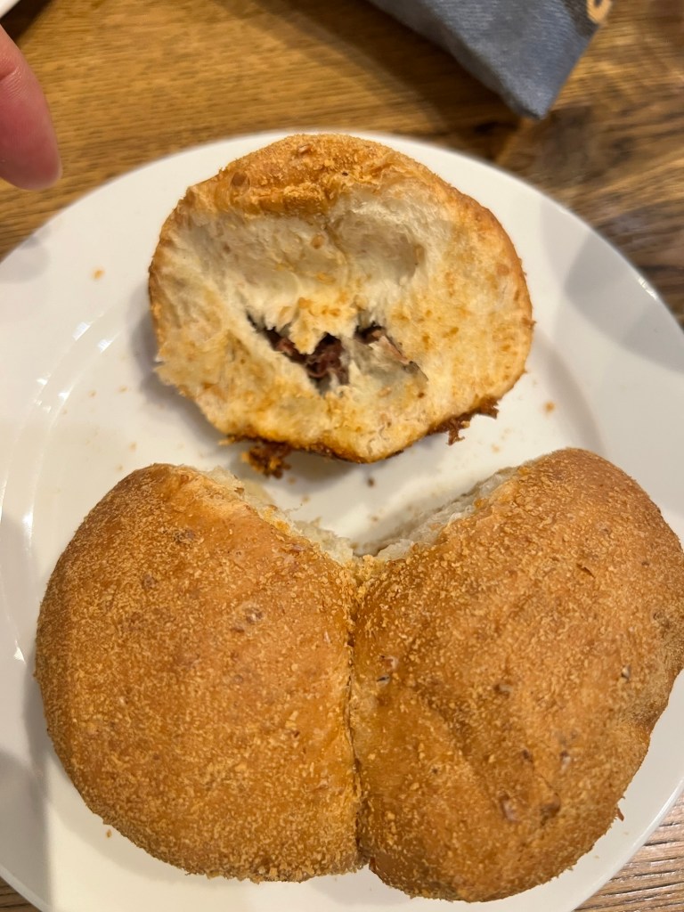 I had a corn beef pandesal, a local offering at Philippines Starbucks.