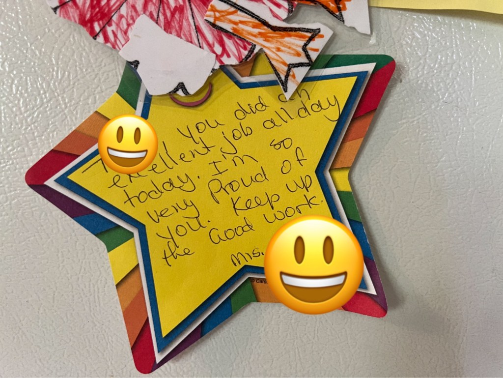 “T, you did an excellent job all day today. I’m so very proud of you. Keep up the good work.”