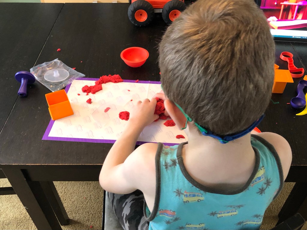 But we’re making modifications. We cleaned up his space and put away a lot of toys during the school day to minimize his distractions – because T is so easily distracted.