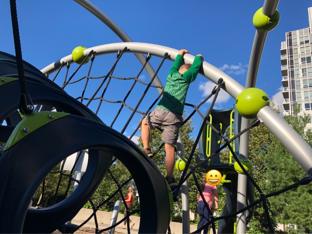I remembered his awkward steps while he was still mastering how to walk. I remembered feeling nervous when he’d climb the stairs up to the slide. Now, it feels like he’s quickly outgrowing this playground.