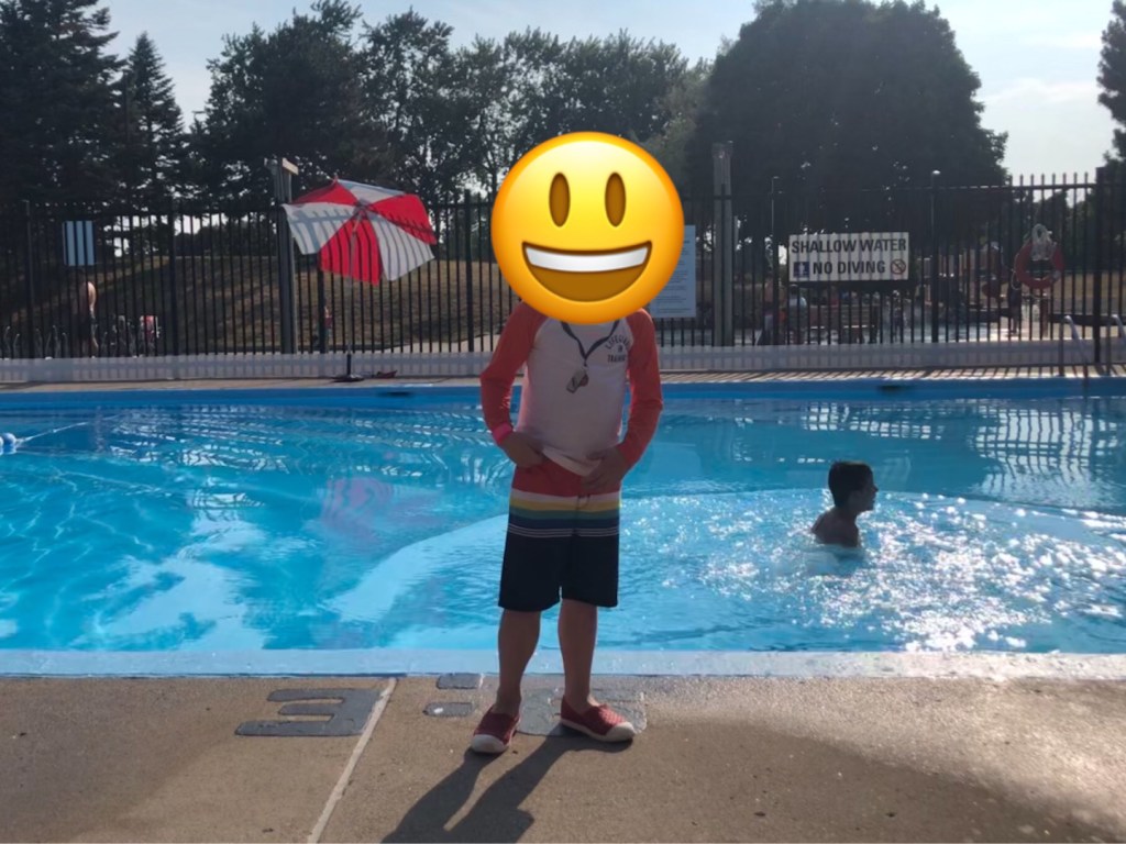 A short while later, the pool reopened its gate and it was our turn to swim. I called for T. He hopped off the ledge on the playground and ran over to join me for a refreshing swim.