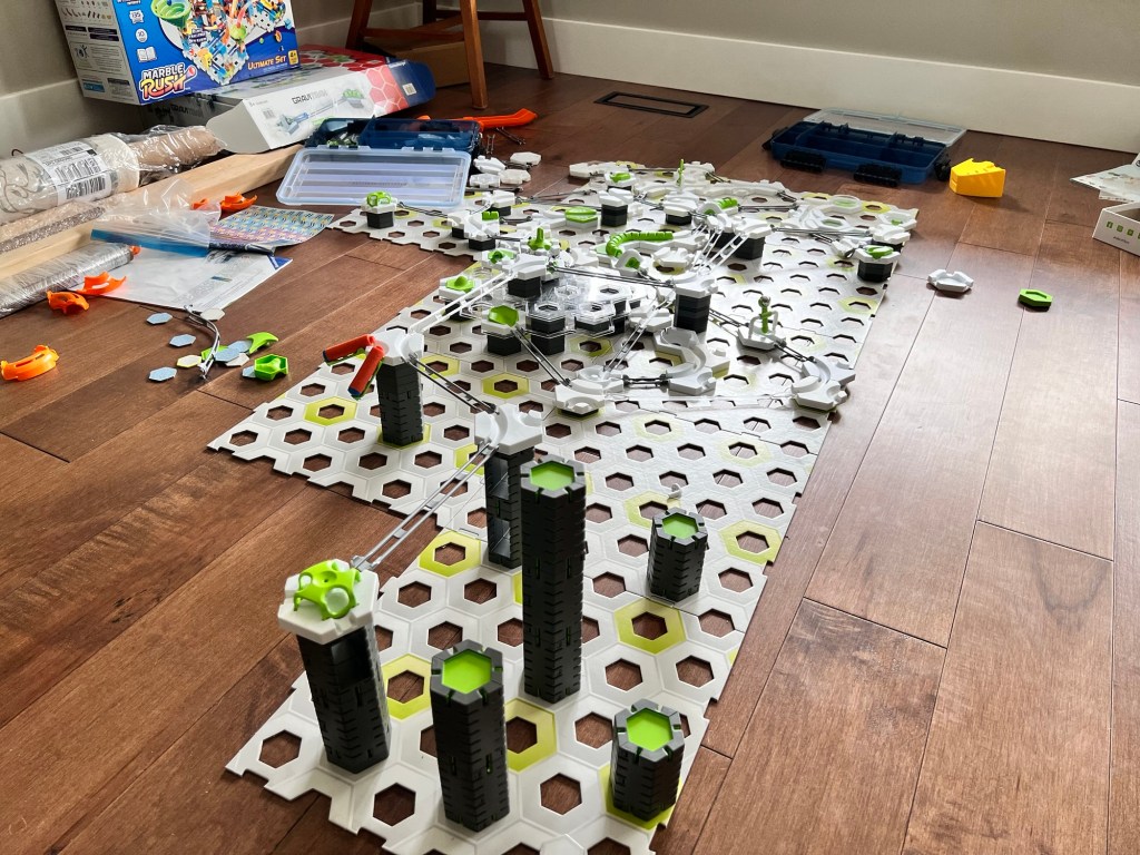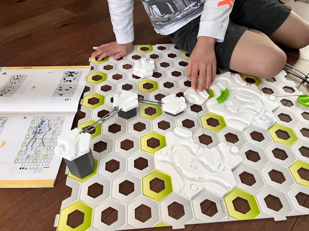 During the first session, she brought over a Gravitrax marble run set – the same one that T has – and said he could take care of it indefinitely.