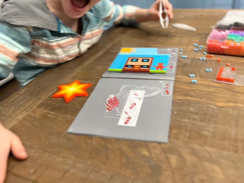 Photo at top: T’s melted bead art created using a bead art set received for Christmas. More about this in a future post.