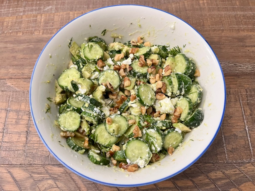 The flavour combination of cucumber, avocado, dill, lemon juice, fresh feta and toasted walnuts was refreshing.