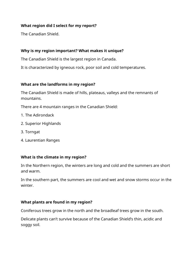 T came up with the title by himself! The photo is of him at Killbear, situated within the Canadian Shield. No bears were harmed in writing this report.I came up with the headings, using a Q&A approach, for him to answer and to help him learn to organize his thoughts when doing research reports.